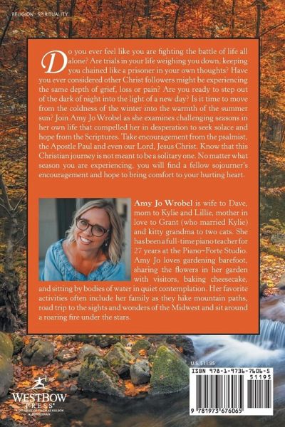 Do you ever feel like you are fighting the battle of life all alone? Are trials in your life weighing you down, keeping you chained like a prisoner in your own thoughts? Have you ever considered other Christ followers might be experiencing the same depth of grief, loss or pain? Are you ready to step out of the dark of night into the light of a new day? Is it time to move from the coldness of the winter into the warmth of the summer sun? Join Amy Jo Wrobel as she examines challenging seasons in her own life that compelled her in desperation to seek solace and hope from the Scriptures. Take encouragement from the psalmist, the Apostle Paul and even our Lord, Jesus Christ. Know that this Christian journey is not meant to be a solitary one. No matter what season you are experiencing, you will find a fellow sojourner's encouragement and hope to bring comfort to your hurting heart.
