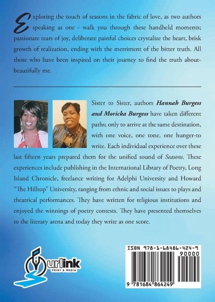 Exploring the touch of seasons in the fabric of love, as two authors speaking as one - walk you through these handheld moments; passionate tears of joy, deliberate painful choices crystalize the heart, brisk growth of realization, ending with the merriment of the bitter truth. All those who have been inspired on their journey to find the truth about beautifully me.