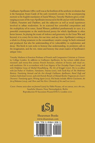 Guillaume Apollinaire (1880-1918) was at the forefront of the aesthetic revolution that is the European Avant-Garde of the early twentieth century. In the accompanying memoir to his English translation of Seated Woman, Timothy Mathews gives a wide-ranging account of the ways Apollinaire interacted in his life and art with Symbolism, Cubism, Futurism and Orphism, and the subjective as well as social experiences involved in urban modernism. In its scattered but controlled composition and the multiplicity of its tones, Seated Woman, published posthumously in 1920, is a powerful counterpoint to the multi-faceted poetry for which Apollinaire is often better known. In playing the music of violence as well as the generosity that characterised the Great War, it is a story of its time, for our time and any time. Apollinaire's writing as a whole is a living testament to the extraordinary creative energy he both witnessed and produced, but also his understanding of its vulnerability to exploitation and decay. This book in turn seeks to honour that understanding, its persistent calls to the imagination, and the wit, vision and honesty that await readers of Apollinaire's unique voice. The book includes a memoir by Timothy Mathews in which he discusses Seated Woman and his translation, as well as Apollinaire's aesthetic generally and its crucial part in the development of European modernism. The book contains further texts in which Timothy Mathews responds to Apollinaire's writing through translation, as well as critically and creatively. "A remarkable testimony to the 'on-the-go-ness' of Apollinaire. Having plunged into his poems for years untold, I discovered this Seated Woman (My God, she is that and more) through Timothy Mathews's rendering, I won't just say 'translation' - this is a kind of miracle of wit, facetious wording, and over-the-top, beyond the pale Beingness. Think upon this, Picasso!" -Mary Ann Caws, Distinguished Professor Emerita of Comparative Literature, English, and French at the Graduate School of the City University of New York.