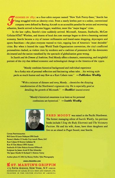 Founded in 1851 as a four-cabin outpost named "New York Pretty-Soon," Seattle has long struggled with an identity crisis. From a nearly lawless port, to a sedate, conventional company town defined by Boeing Aircraft, to an accessible paradise for artists and recovering urbanites, Seattle repeatedly tried and failed to become bigger, wealthier, more like "major league" cities. In the late 1980s, Seattle's time suddenly arrived. Microsoft, Amazon, Starbucks, McCaw Cellular/AT&T Wireless, and dozens of local dot.com startups began to drive a booming national economy. Seattle became a city of instant millionaires and brand name shopping, skyscrapers and sports franchises-- the place everyone wanted to visit, topping lists of America's "most desirable" cities. But with such wealth came consequences: overdevelopment, paralyzing traffic, racial and class divisions, and a street population of teenagers discarded by the new culture, whose rage and disaffection fueled the rise of bands such as Nirvana. Striving to reach its ambitions, Seattle seemed to be losing the struggle for its soul. And when it hosted the 1999 World Trade Organization convention, the city's conflicted personalities clashed, as violent riots by residents and a coalition of protestors left the downtown decimated and the nation transfixed by the spectacle of globalization gone wrong. In Seattle and the Demons of Ambition, Fred Moody uses his own background as a native son, along with wide-ranging encounters with others, to trace the growing pains of the city he loves. Profiling Bill Gates and never-quite-champion football coach Chuck Knox, a pair of ambitious entrepreneurs and a homeless sculptor once profiled in the New Yorker, grunge music superstars and the preyed-upon children of the documentary "Streetwise," Moody offers a dramatic, entertaining, and insightful portrait of the city that defined economic and technological change in the America of the 1990s.
