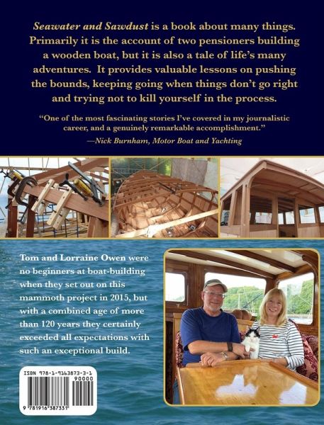 Seawater and Sawdust is a book about many things. Primarily it is the account of two pensioners building a wooden boat, but it is also a tale of life's many adventures. Tom and Lorraine Owen were no beginners at boat-building when they set out on this mammoth project in 2015, but with a combined age of more than 120 years they certainly exceeded all expectations with such an exceptional build. Instead of being a 'how-to' textbook, Seawater and Sawdust provides valuable lessons on pushing the bounds, keeping going when things don't go right and trying not to kill yourself in the process. The couple's remarkable story offers encouragement and inspiration to 'never give up', in their case to advancing age, challenging circumstances, injury and even major surgery. Written in an easy-to-follow and amusing style, their two-year journey - from inception and planning to building and on to launch - is fully illustrated with step-by-step photographs, giving a wonderful visual insight into the intricacies and finish of their beloved 30-foot motorboat Thea, along with their celebrations and milestones along the way. Though, while Tom and Lorraine never doubted that they would complete their project, it wasn't all plain sailing. Along with the many highs, they share their mistakes with honesty and openness and their low spots with humour. Each chapter focusses on a specific part of the boat-building process, with a charming sketch to introduce every theme. Additional chapters post-build describe the couple's tricks to staying sane and keeping on track, and include reflections on how their bespoke, handmade boat is serving them now - a handful of years and many nautical miles later. After 9,000 'person' hours of work, Thea was launched in December 2016 on the River Dart, and has ever since attracted the acclaim of the boating press and the public. She has featured in a number of boating magazines, including Motor Boat and Yachting and Practical Boat Owner, and is now well recognised along the Devon and Cornwall coast, including the Isles of Scilly. For the nautical enthusiast, boat-building curious or southwest coast sailor, join Tom and Lorraine on their journey to success, in a world revolving around seawater and sawdust. Available in hardback (great for gifting), paperback and eBook.
