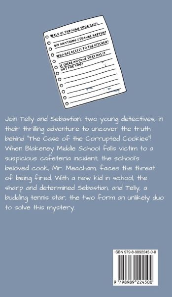 A cookie conspiracy, a framed worker, and two unlikely detectives-this sweet mystery will delight young readers! Telly has everything a girl could want: a wealthy family, a luxurious home, and an excellent private education. But she doesn't want any of that. She wants to be normal, like the other kids. So when her parents enroll her in public school, she's ready to have fun, make friends, and... solve mysteries? When she meets Sebastian, a new student from London who claims to be a detective, they form an unlikely duo and take on the mysteries of their school. Their first case is a baffling one: a beloved person is the prime suspect, but the dynamic duo doesn't believe that for a second. They're going to have to use all their wits, courage, and mystery solving skills to get to the bottom of things. And this shocking conclusion will surprise everyone! Sebastian the Kid Detective: The Case of the Corrupted Cookies is a delightful mystery novel for young readers, full of humor, suspense, and friendship. Join Telly and Sebastian as they embark on their first adventure together, and get ready for more mysteries to come!