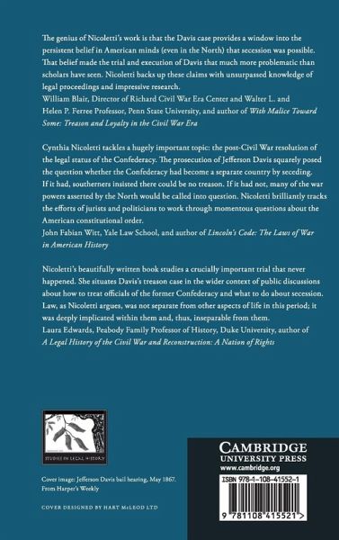 This book focuses on the post-Civil War treason prosecution of Confederate President Jefferson Davis, which was seen as a test case on the major question that animated the Civil War: the constitutionality of secession. The case never went to trial because it threatened to undercut the meaning and significance of Union victory. Cynthia Nicoletti describes the interactions of the lawyers who worked on both sides of the Davis case - who saw its potential to disrupt the verdict of the battlefield against secession. In the aftermath of the Civil War, Americans engaged in a wide-ranging debate over the legitimacy and effectiveness of war as a method of legal adjudication. Instead of risking the 'wrong' outcome in the highly volatile Davis case, the Supreme Court took the opportunity to pronounce secession unconstitutional in Texas v. White (1869).