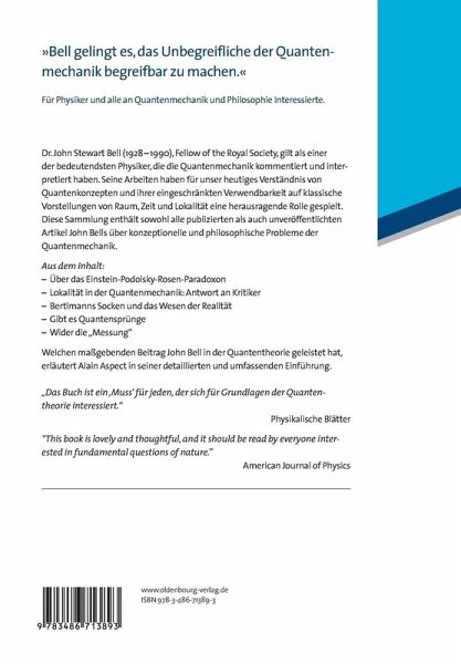 "Dieses Buch ist nicht nur für ein Muss für jede Privatbibliothek, es gehört insbesondere gelesen. Die deutsche sehr gelungene Übersetzung ist nun allen zugänglich, Studierenden und allen naturwissenschaftlich Interessierten, die sich im Englischen unsicher fühlen, denn um Bell zu verstehen, muss man zuerst in der Sprache sicher sein, um zu verstehen, dass sich hier ein ganz großer Physiker Gedanken gemacht hat." Prof. Dr. Detlef Dürr, Mathematisches Institut, LMU München "Das Buch ist ein 'Muss' für jeden, der sich für Grundlagen der Quantentheorie interessiert." Physikalische Blätter ''Angesichts der großen Bedeutung von Bells Aufsätzen ist es nur zu begrüßen, dass sie jetzt auch einem deutschen Publikum leicht zugänglich sind. Aber auch für diejenigen, welche die englischen Arbeiten bereits kennen, kann die deutsche Übersetzung die eine oder andere Nuance von Bells Gedanken wieder klarer vor Augen führen oder neue Assoziationen wecken.'' Physik Journal "... a timely and immensely valuable book ... much of [it] is so good that it surely could not be bettered." New Scientist "... an exemplary introduction to the continuing debates about quantum mechanics." Nature "This book is lovely and thoughtful, and it should be read by everyone interested in fundamental questions of nature." American Journal of Physics "... the new edition of Bell's papers is a must-buy for anyone seriously interested in the fundamentals of quantum mechanics and in understanding Bell's contribution to our grasp of the subject." Times Higher Education Supplement
