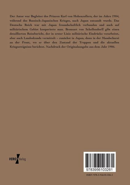 Der Autor war Begleiter des Prinzen Karl von Hohenzollern, der im Jahre 1904, während des Russisch-Japanischen Krieges, nach Japan entsandt wurde. Das Deutsche Reich war mit Japan freundschaftlich verbunden und auch auf militärischem Gebiet kooperierte man. Bronsart von Schellendorff gibt einen detaillierten Reisebericht, der in erster Linie militärische Eindrücke verarbeitet, aber auch Landeskunde vermittelt zunächst in Japan, dann in der Mandschurei an der Front, wo er über den Zustand der Truppen und die aktuellen Kriegsereignisse berichtet. Nachdruck der Originalausgabe aus dem Jahr 1906.