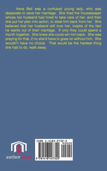 Irene Bell was a confused young lady, who was desperate to save her marriage. She fired the housekeeper whose her husband had hired to take care of her, and then she put her plan into action, to steal him back from her. She believed that her husband still love her, inspite of the fact he wants out of their marriage. If only they could spend a month together. She knew she could win him back. She was praying for that, if no she'd have to goes on without him. She wouldn't have no choice. That would be the hardest thing she had to do, walk away.