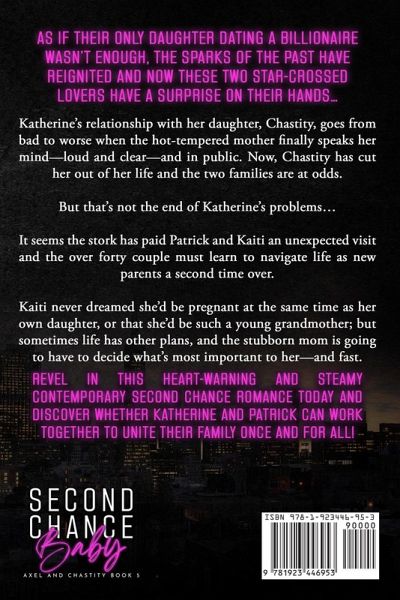 As if their only daughter dating a billionaire wasn't enough, the sparks of the past have reignited and now these two star-crossed lovers have a surprise on their hands... Katherine's relationship with her daughter, Chastity, goes from bad to worse when the hot-tempered mother finally speaks her mind-loud and clear-and in public. Now, Chastity has cut her out of her life and the two families are at odds. But that's not the end of Katherine's problems... It seems the stork has paid Patrick and Kaiti an unexpected visit and the over forty couple must learn to navigate life as new parents a second time over. Kaiti never dreamed she'd be pregnant at the same time as her own daughter, or that she'd be such a young grandmother; but sometimes life has other plans, and the stubborn mom is going to have to decide what's most important to her-and fast. Revel in this heart-warning and steamy contemporary second chance romance today and discover whether Katherine and Patrick can work together to unite their family once and for all!