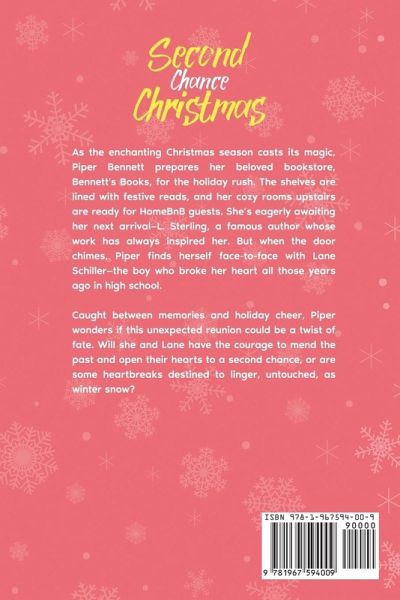 As the enchanting Christmas season casts its magic, Piper Bennett prepares her cherished bookstore, Bennett's Books, for the holiday rush. The shelves are lined with festive reads, and her cozy rooms upstairs are ready for HomeBnB guests. She's eagerly awaiting her next arrival-L. Sterling, a famous author whose work has always inspired her. But when the door chimes, Piper finds herself face-to-face with Lane Schiller-the boy who broke her heart all those years ago in high school. Caught between memories and holiday cheer, Piper wonders if this unexpected reunion could be a twist of fate. Will she and Lane have the courage to mend the past and open their hearts to a second chance, or are some heartbreaks destined to linger, untouched, as winter snow? Fall in love with Lane and Piper in the first installment of the Pine Hills Series. This series takes place in New York in the cute and cozy town of Pine Hills.