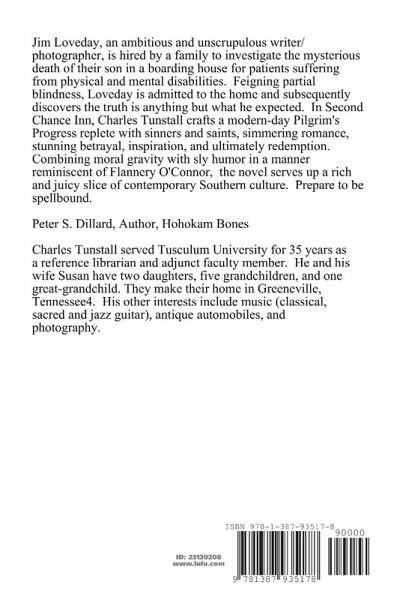 Jim Loveday, an ambitious and unscrupulous freelance writer and photographer, is hired by a family to investigate the mysterious death of their son in a boarding house for people suffering from physical and mental disabilities. Feigning partial blindness, Loveday is admitted into the home and subsequently discovers the truth is anything but what he imagined. Peter S. Dillard, author Hohokam Bones. Charles Tunstall served Tusculum University for 35 years as a reference librarian and adjunct faculty member. He and his wife Susan live in Greeneville, Tennessee3. His other interests include music (classical, sacred and jazz guitar), antique automobiles, and photography.