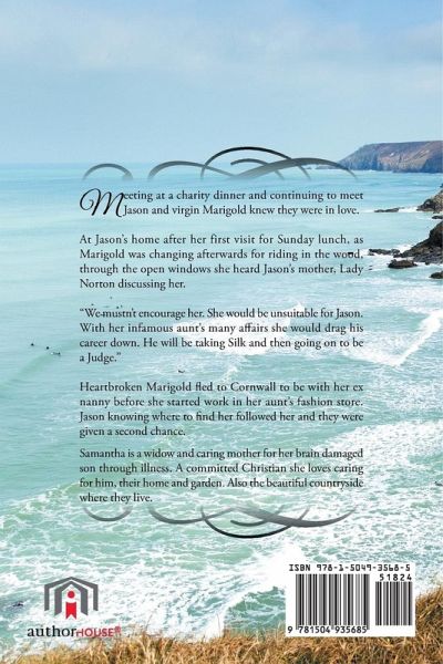 Meeting at a charity dinner and continuing to meet Jason and virgin Marigold knew they were in love. At Jason's home after her first visit for Sunday lunch, as Marigold was changing afterwards for riding in the wood, through the open windows she heard Jason's mother, Lady Norton discussing her. "We mustn't encourage her. She would be unsuitable for Jason. With her infamous aunt's many affairs she would drag his career down. He will be taking Silk and then going on to be a Judge." Heartbroken Marigold fled to Cornwall to be with her ex nanny before she started work in her aunt's fashion store. Jason knowing where to find her followed her and they were given a second chance.