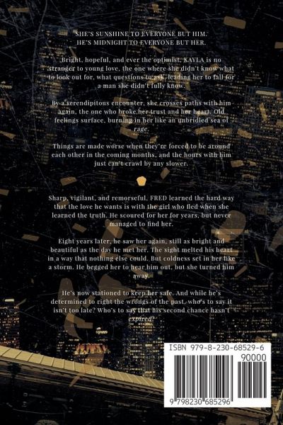 SHE'S SUNSHINE TO EVERYONE BUT HIM. HE'S MIDNIGHT TO EVERYONE BUT HER. Bright, hopeful, and ever the optimist, KAYLA is no stranger to young love, the one where she didn't know what to look out for, what questions to ask, leading her to fall for a man she didn't fully know. By a serendipitous encounter, she crosses paths with him again, the one who broke her trust and her heart. Old feelings surface, burning in her like an unbridled sea of rage. Things are made worse when they're forced to be around each other in the coming months, and the hours with him just can't crawl by any slower. *** Sharp, vigilant, and remorseful, FRED learned the hard way that the love he wants is with the girl who fled when she learned the truth. He scoured for her for years, but never managed to find her. Eight years later, he saw her again, still as bright and beautiful as the day he met her. The sight melted his heart in a way that nothing else could. But coldness set in her like a storm. He begged her to hear him out, but she turned him away. He's now stationed to keep her safe. And while he's determined to right the wrongs of the past, who's to say it isn't too late? Who's to say that his second chance hasn't expired? [This book contains mature themes. Reader discretion is advised.]
