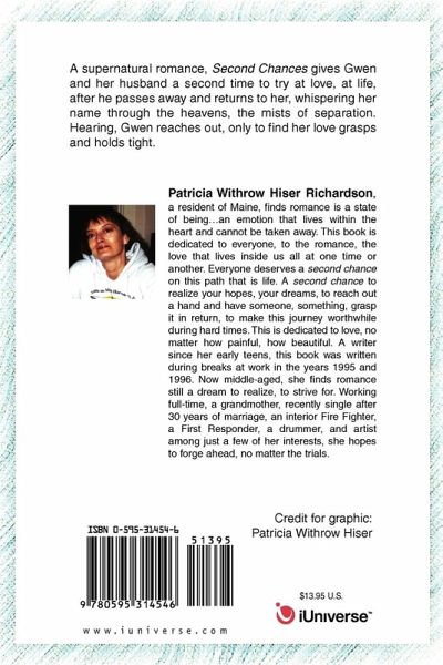 A supernatural romance, Second Chances gives Gwen and her husband a second time to try at love, at life, after he passes away and returns to her, whispering her name through the heavens, the mists of separation. Hearing, Gwen reaches out, only to find her love grasps and holds tight.