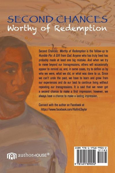 Second Chances: Worthy of Redemption is the follow-up to Humble Pie: A Gift from God. Anyone who has truly lived has probably made at least one mistake. In some cases, the mistake is something one has to learn to live with for the rest of one's life. If this blemish on one's life's record doesn't result in public humiliation, it can at least serve as a thorn in one's side to help keep the person humble. Even when we forget and move beyond our transgressions, others will occasionally appear to remind us, and, in some cases, try to define us by who we were or by what we did or what was done to us. Second Chances: Worthy of Redemption is about those of us who have made mistakes. Since we can't undo the past that added an imperfection or two to our lives, we have to learn and grow from our experiences and do our best to continue living without repeating our transgressions. It is said that we never get a second chance to make a first impression, but we always have a chance to make a lasting impression. Connect with the author on Facebook at https://www.facebook.com/KollinLTaylor