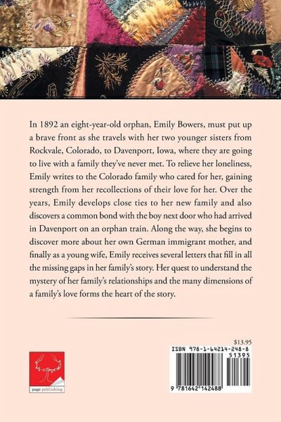 In 1892 an eight-year-old orphan, Emily Bowers, must put up a brave front as she travels with her two younger sisters from Rockvale, Colorado, to Davenport, Iowa, where they are going to live with a family they’ve never met. To relieve her loneliness, Emily writes to the Colorado family who cared for her, gaining strength from her recollections of their love for her. Over the years, Emily develops close ties to her new family and also discovers a common bond with the boy next door who had arrived in Davenport on an orphan train. Along the way, she begins to discover more about her own German immigrant mother, and finally as a young wife, Emily receives several letters that fill in all the missing gaps in her family’s story. Her quest to understand the mystery of her family’s relationships and the many dimensions of a family’s love forms the heart of the story.