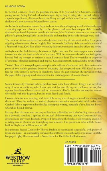 In "Second Chances," follow the poignant journey of 23-year-old Kayla Grisham, a resilient young woman facing life's relentless challenges. Kayla, despite living with cerebral palsy and a speech impediment, discovers the extraordinary strength within herself as she confronts the shadows of a new adversary-bilateral breast cancer. As the battle with cancer ensues, Kayla is thrust into the unforgiving world of chemotherapy, a daunting experience that not only tests her physical endurance but also propels her into the depths of a profound depression. Amidst the shadows, Marc Sanderson emerges as an unwavering pillar of support, loving Kayla unconditionally and standing by her side through every trial. The narrative takes an unexpected turn when Jerome Carter, Kayla's charismatic ex-fiancé, reappears, reigniting a flame that once burned brightly. Torn between the familiarity of the past and the promise of a future with Marc, Kayla faces a heart-wrenching choice that transcends the realms of love and loyalty. As Kayla nears her 24th birthday, the stakes are higher than ever. The looming question of survival intertwines with the intricate dance of romance. Will she overcome the odds stacked against her and find the strength to embrace a second chance at love? The story unfolds in a tapestry of emotions, blending heartbreak and hope as Kayla navigates the unpredictable twists of fate. "Second Chances" is a compelling tale that explores the resilience of the human spirit, the transformative power of love, and the profound beauty of embracing life's unexpected turns. Will Kayla's journey lead her to the arms of a new love or rekindle the flames of a past romance? The answer lies within the pages of this gripping novel-a testament to the enduring power of second chances.
