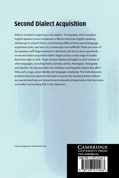 What is involved in acquiring a new dialect - for example, when Canadian English speakers move to Australia or African American English-speaking children go to school? How is such learning different from second language acquisition (SLA), and why is it in some ways more difficult? These are some of the questions Jeff Siegel examines in this book, which focuses specifically on second dialect acquisition (SDA). Siegel surveys a wide range of studies that throw light on SDA. These concern dialects of English as well as those of other languages, including Dutch, German, Greek, Norwegian, Portuguese and Spanish. He also describes the individual and linguistic factors that affect SDA, such as age, social identity and language complexity. The book discusses problems faced by students who have to acquire the standard dialect without any special teaching, and presents some educational approaches that have been successful in promoting SDA in the classroom.