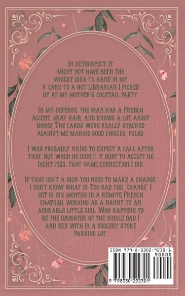 In retrospect, it might not have been the wisest idea to hand in my v-card to a hot librarian I picked up at my mother's cocktail party. In my defense, the man has a French accent, gray hair, and knows a lot about books. The cards were really stacked against me making good choices, folks. I was probably naïve to expect a call after that, but when he didn't, it hurt to accept he didn't feel that same connection I did. If that isn't a sign you need to make a change, I don't know what is. Too bad the "change" I get is six months in a remote French chateau, working as a nanny to an adorable little girl. Who happens to be the daughter of the single dad I had sex with in a grocery store parking lot. Ellis Delvaux has made it clear he isn't interested in a relationship. Unfortunately, when you're a hopeless romantic spending that much time with someone you're attracted to, in what might be the most beautiful place on the planet, things happen. And sometimes, to avoid those things happening, you come up with a list of rules to facilitate six-months of secret, no strings attached sex with a man who is as off-limits as it gets.