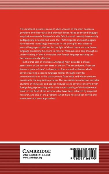 This 1986 textbook presents an account of the main concerns, problems and theoretical and practical issues raised by second language acquisition research. Research in this field had been mainly pedagogically oriented, but since the 1970s linguists and psychologists have become increasingly interested in the principles that underlie second language acquisition for the light these throw on how human language processing functions in general. Moreover, it is only through an understanding of these principles that foreign language teaching can become maximally effective. In the first part of his book, Wolfgang Klein provides a critical assessment of the state of the art at the time. The second part, 'from the learner's point of view', is devoted to four central problems which anyone learning a second language (either through everyday communication or in the classroom) is faced with, and whose solution constitutes the acquisition process. This accessible introduction provides students of linguistics and applied linguistics and anyone concerned with foreign language teaching with a real understanding of the fundamental issues in the field.