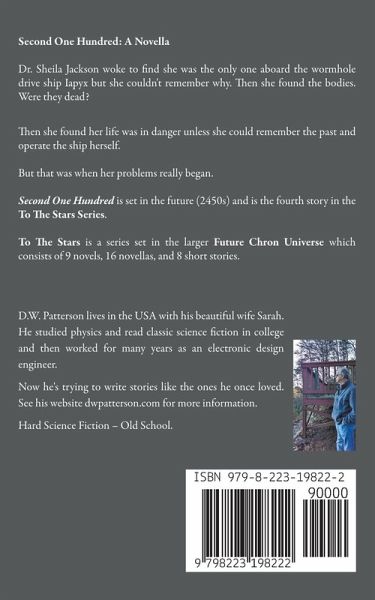 Second One Hundred: A Novella Dr. Sheila Jackson woke to find she was the only one aboard the wormhole drive ship Iapyx but she couldn't remember why. Then she found the bodies. Were they dead? Then she found her life was in danger unless she could remember the past and operate the ship herself. But that was when her problems really began. Second One Hundred is set in the future (2450s) and is the fourth story in the To The Stars Series. To The Stars is a series set in the larger Future Chron Universe which consists of 9 novels, 16 novellas, and 8 short stories. Hard Science Fiction - Old School.