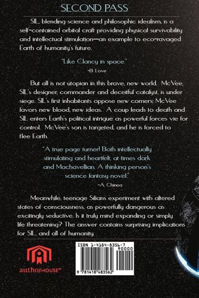 SIL, blending science and philosophic idealism, is a self-contained orbital craft providing physical survivability and intellectual stimulation-an example to eco-ravaged Earth of humanity's future. But all is not Utopian in this brave, new world. McVee, SIL's designer, commander and deceitful catalyst, is under siege. SIL's first inhabitants oppose new comers; McVee favors new blood, new ideas. A coup leads to death and SIL enters Earth's political intrigue as powerful forces vie for control. McVee's son is targeted, and he is forced to flee Earth. Meanwhile, teenage Silians experiment with altered states of consciousness, as powerfully dangerous as excitingly seductive. Is it truly mind expanding or simply life threatening? The answer contains surprising implications for SIL, and all of humanity.