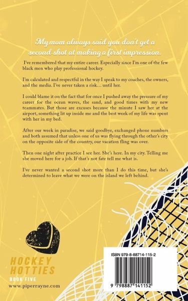 ***Now a USA Today Bestseller** My mom always said you don't get a second shot at making a first impression. I've remembered that my entire career. Especially since I'm one of the few black men who play professional hockey. I'm calculated and respectful in the way I speak to my coaches, the owners, and the media. I've never taken a risk... until her. I could blame it on the fact that for once I pushed away the pressure of my career for the ocean waves, the sand, and good times with my new teammates. But those are excuses because the minute I saw her at the airport, something lit up inside me and the best week of my life was spent with her in my bed. After our week in paradise, we said goodbye, exchanged phone numbers and both assumed that unless one of us was flying through the other's city on the opposite side of the country, our vacation fling was over. Then one night after practice I see her. She's here. In my city. Telling me she moved here for a job. If that's not fate tell me what is. I've never wanted a second shot more than I do this time, but she's determined to leave what we were on the island we left behind.