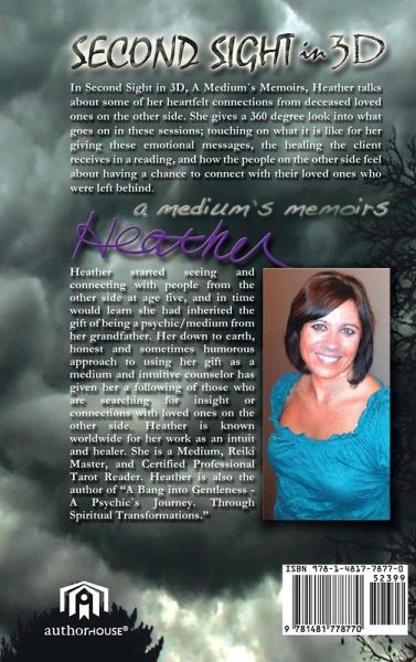 In Second Sight in 3D, A Medium`s Memoirs, Heather talks about some of her heartfelt connections from deceased loved ones on the other side. She gives a 360 degree look into what goes on in these sessions; touching on what it is like for her giving these emotional messages, the healing the client receives in a reading, and how the people on the other side feel about having a chance to connect with their loved ones who were left behind.