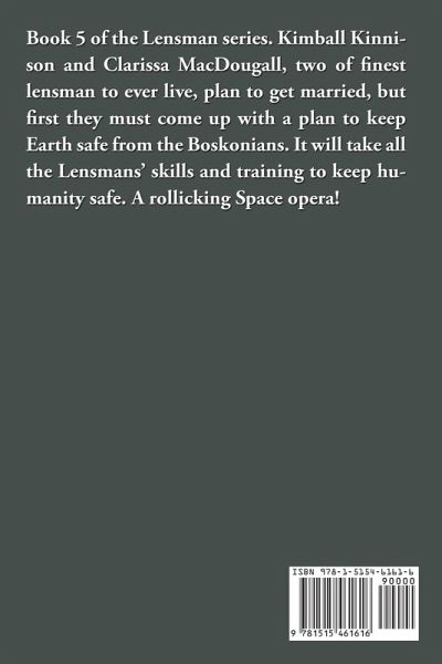 Book 5 of the Lensman series. Kimball Kinnison and Clarissa MacDougall, two of finest lensman to ever live, plan to get married, but first they must come up with a plan to keep Earth safe from the Boskonians. It will take all the Lensmans' skills and training to keep humanity safe. A rollicking Space opera!