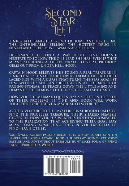 Tinker Bell, banished from her homeland for doing the unthinkable, selling the hottest drug in Neverland--pixie dust--wants absolution. Determined to find a way home, Tink doesn't hesitate to follow the one lead she has, even if that means seducing a filthy pirate to steal precious gems out from under his...hook. Captain Hook believes he's found a real treasure in Tink. That is, until he recovers from her pixie dust laced kiss with a curse that turns the seas against him. With his ship and reputation at the mercy of raging storms, he tracks down the little minx and demands she remove the curse. Too bad she can't. However, the mermaid queen has a solution to both of their problems, if Tink and Hook will work together to retrieve a magical item for her. As they venture to the mysterious Shrouded Isles to find the priceless treasure, their shared nemesis closes in. However, his wrath is nothing compared to the realization that achieving their goal may mean losing something they never expected to find--each other.