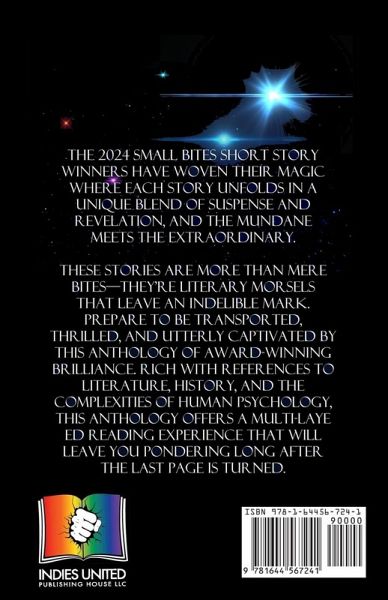 Dive into a literary feast where the finest storytellers converge. The 2024 Small Bites Short Story Winners have woven their magic where each story unfolds in a unique blend of suspense and revelation, and the mundane meets the extraordinary. Where each turn of the page takes you deeper into the lives of characters who exist on the fringes of society, in the shadows of the ordinary, and at the crossroads of life-changing decisions. This collection of gripping narratives invites you to explore the human condition through a series of stories that range from the dark and brooding atmosphere of a seedy bar to the hopeful journey of medical students on the cusp of their careers. Each story is a thread in the larger narrative fabric, woven together to create a compelling portrait of humanity in all its flawed beauty. Prepare to be moved, challenged, and ultimately changed by the powerful storytelling within these pages. These stories are more than mere bites-they're literary morsels that leave an indelible mark. Prepare to be transported, thrilled, and utterly captivated by this anthology of award-winning brilliance. Rich with references to literature, history, and the complexities of human psychology, this anthology offers a multi-layered reading experience that will leave you pondering long after the last page is turned.