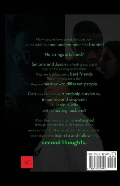 Many people have asked the question - is it possible for men and women to be friends? No strings attached? Simone and Jason are finding out that it may not be as easy as it seems. They are fast becoming best friends. The only problem is that they are married - to different people. Can their blossoming friendship survive the innuendo and suspicion of a jealous wife and a cheating husband? When their lives are further entangled through careers, family, deception, crime, and even murder, the two of them have to decide when it's best to listen and follow their second thoughts.