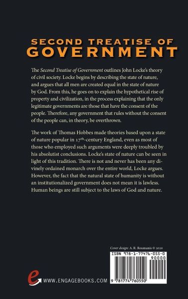The Second Treatise of Government outlines John Locke's theory of civil society. Locke begins by describing the state of nature, and argues that all men are created equal in the state of nature by God. From this, he goes on to explain the hypothetical rise of property and civilization, in the process explaining that the only legitimate governments are those that have the consent of the people. Therefore, any government that rules without the consent of the people can, in theory, be overthrown. The work of Thomas Hobbes made theories based upon a state of nature popular in 17th-century England,…mehr
