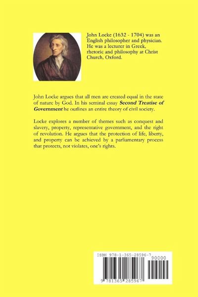 John Locke argues that all men are created equal in the state of nature by God. In his seminal essay Second Treatise of Government he outlines an entire theory of civil society. Locke explores a number of themes such as conquest and slavery, property, representative government, and the right of revolution. He argues that the protection of life, liberty, and property can be achieved by a parliamentary process that protects, not violates, one's rights.