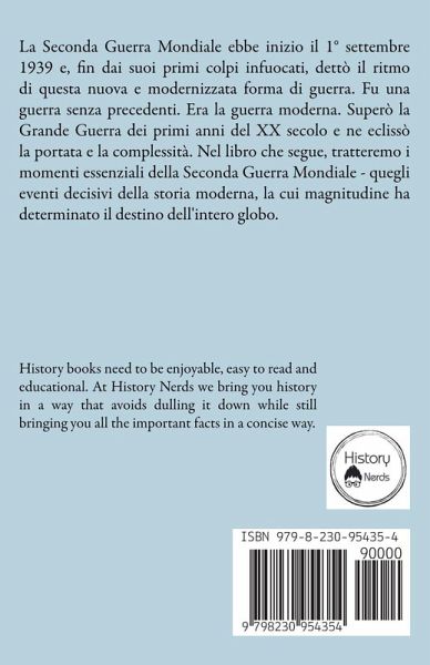 La Seconda Guerra Mondiale ebbe inizio il 1° settembre 1939 e, fin dai suoi primi colpi infuocati, dettò il ritmo di questa nuova e modernizzata forma di guerra. Fu una guerra senza precedenti. Era la guerra moderna. Superò la Grande Guerra dei primi anni del XX secolo e ne eclissò la portata e la complessità. Nel libro che segue, tratteremo i momenti essenziali della Seconda Guerra Mondiale - quegli eventi decisivi della storia moderna, la cui magnitudine ha determinato il destino dell'intero globo.
