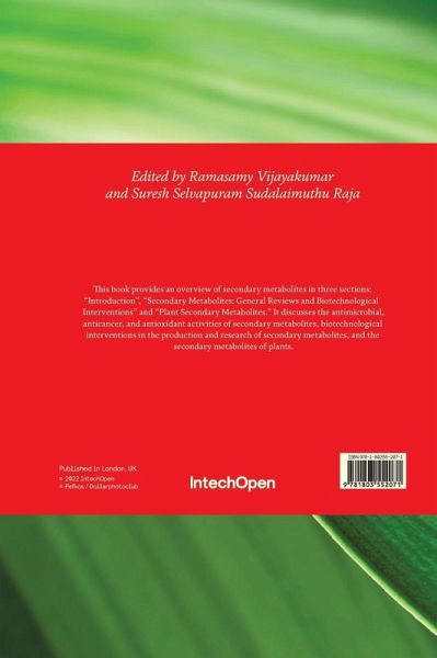This book provides an overview of secondary metabolites in three sections: ¿Introduction¿, ¿Secondary Metabolites: General Reviews and Biotechnological Interventions¿ and ¿Plant Secondary Metabolites.¿ It discusses the antimicrobial, anticancer, and antioxidant activities of secondary metabolites, biotechnological interventions in the production and research of secondary metabolites, and the secondary metabolites of plants.