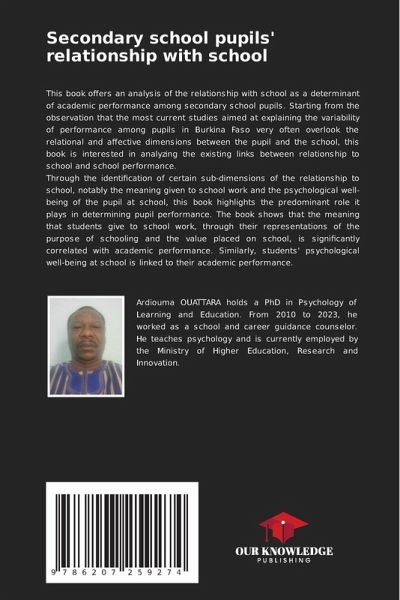 This book offers an analysis of the relationship with school as a determinant of academic performance among secondary school pupils. Starting from the observation that the most current studies aimed at explaining the variability of performance among pupils in Burkina Faso very often overlook the relational and affective dimensions between the pupil and the school, this book is interested in analyzing the existing links between relationship to school and school performance.Through the identification of certain sub-dimensions of the relationship to school, notably the meaning given to school work and the psychological well-being of the pupil at school, this book highlights the predominant role it plays in determining pupil performance. The book shows that the meaning that students give to school work, through their representations of the purpose of schooling and the value placed on school, is significantly correlated with academic performance. Similarly, students' psychological well-being at school is linked to their academic performance.