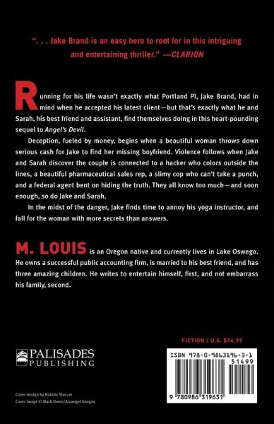 Running for his life wasn’t exactly what Portland PI, Jake Brand, had in mind when he accepted his latest client—but that’s exactly what he and Sarah, his best friend and assistant, find themselves doing in this heart-pounding sequel to Angel’s Devil. Deception, fueled by money, begins when a beautiful woman throws down serious cash for Jake to find her missing boyfriend. Violence follows when Jake and Sarah discover the couple is connected to a hacker who colors outside the lines, a beautiful pharmaceutical sales rep, a slimy cop who can’t take a punch, and a federal agent bent on hiding the truth. They all know too much—and soon enough, so do Jake and Sarah. In the midst of the danger, Jake finds time to annoy his yoga instructor, and fall for the woman with more secrets than answers.