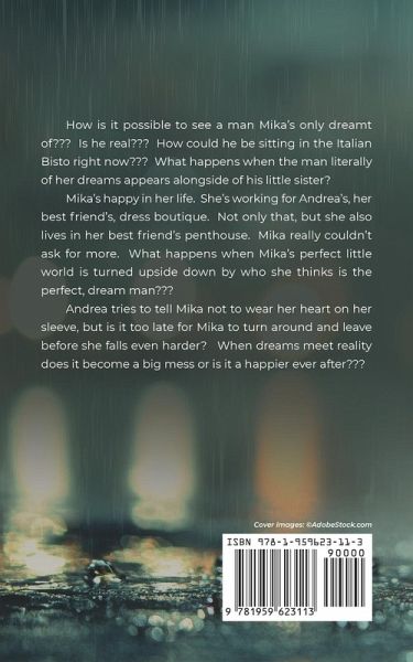 How is it possible to see a man Mika's only dreamt of??? Is he real??? How could he be sitting in the Italian Bisto right now??? What happens when the man literally of her dreams appears alongside of his little sister? Mika's happy in her life. She's working for Andrea's, her best friend's, dress boutique. Not only that, but she also lives in her best friend's penthouse. Mika really couldn't ask for more. What happens when Mika's perfect little world is turned upside down by who she thinks is the perfect, dream man??? Andrea tries to tell Mika not to wear her heart on her sleeve, but is it too late for Mika to turn around and leave before she falls even harder? When dreams meet reality does it become a big mess or is it a happier ever after???