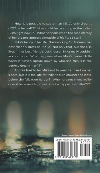 How is it possible to see a man Mika's only dreamt of??? Is he real??? How could he be sitting in the Italian Bisto right now??? What happens when the man literally of her dreams appears alongside of his little sister? Mika's happy in her life. She's working for Andrea's, her best friend's, dress boutique. Not only that, but she also lives in her best friend's penthouse. Mika really couldn't ask for more. What happens when Mika's perfect little world is turned upside down by who she thinks is the perfect, dream man??? Andrea tries to tell Mika not to wear her heart on her sleeve, but is it too late for Mika to turn around and leave before she falls even harder? When dreams meet reality does it become a big mess or is it a happier ever after???