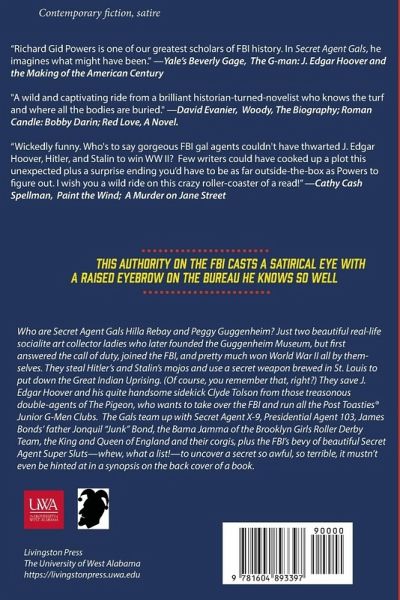 "Who are Secret Agent Gals, Hilla Rebay and Peggy Guggenheim? Just two beautiful real-life socialite art collector ladies who later founded the Guggenheim Museum, but first answered the call of duty, joined the FBI, and pretty much won World War II all by themselves. They steal Hitler's and Stalin's mojos and use a secret weapon brewed in St. Louis to put down the Great Indian Uprising. (Of course, you remember that, right?) They save J. Edgar Hoover and his handsome sidekick Clyde Tolson from treasonous agents and The Pigeon who want to take over the FBI and run all the Post Toastiesª Junior G-Men Clubs. The Gals team up with Secret Agent X-9, Presidential Agent 103, Chief Shitting Bull, James Bonds' father Jonquil "Junk" Bond, the Bama Jamma of the Brooklyn Girls Roller Derby Team, the King and Queen of England and their corgis, and the FBI's bevy of beautiful Secret Agent Super Sluts-whew, what a list!-to uncover a secret so awful, so terrible, it shouldn't even be hinted at on the back cover of a book"--
