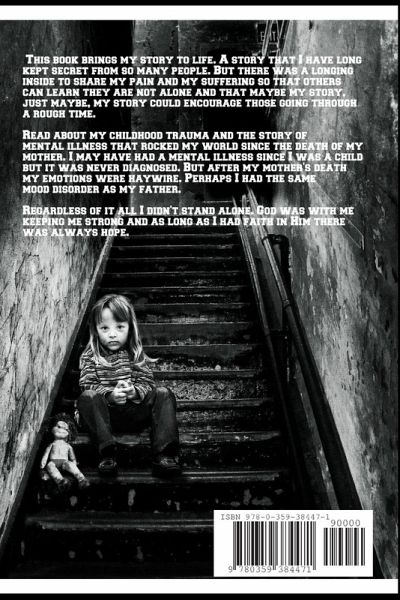 When the author was a young girl, she experienced her father having mood swings and this created an unsettled environment for her to grow up in. She was anxious and very uncertain of her father and wondering which mood he would be in and this happened every day. But Janis noticed when she grew older she had not only anxiety but she was having mood swings as well. She went and got help and was put on medications and took a test that showed she was not only dealing with generalized anxiety disorder, but depression, depersonalization, borderline personality disorder, and unspecified bipolar disorder with psychosis. This made her wonder if her father suffered from some of the same mood disorders. Only a conversation with him would tell.