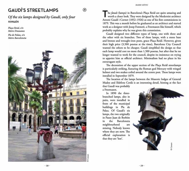 The secrets of Gaudí and the Sagrada Familia, a terrific tour of small trains hidden under the main station, a mysterious hand, a fascinating amphitheater of dissection, an unsuspected air-raid shelter, a kiss of death, a museum tucked away in the back of a shop, a magic talisman on a street sign, secret Mason symbols, the emblem of FC Barcelona in Santa María del Mar... During the day and night, Barcelona reveals its secrets only to locals and travelers seeking to get off the beaten path. To that end, it is key to know where to go. An essential guide for those who think they know Barcelona well or for those looking to discover the hidden side of the city.