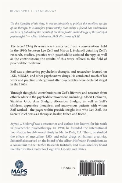 The Secret Chief Revealed: Conversations with Leo Zeff, Pioneer in the Underground Psychedelic Therapy Movement by Myron J. Stolaroff is back in stock! The 2022 revised 2nd edition is a co-publication of the Multidisciplinary Association for Psychedelic Studies (MAPS) and Synergetic Press. Leo Zeff (1912 - 1988) was a pioneering psychedelic therapist and researcher focused on LSD, MDMA and other psychoactive drugs. He conducted much of his work and practice underground after psychedelics were declared illegal in the 1960s. By the time he turned 70, Zeff wass single-handedly responsible for the introduction of psychedelic compounds in use globally among nearly 4,000 individual therapists/practitioners. The Secret Chief is written as a transcription of an interview conducted in the 1980s with Zeff about his research, studies and practice with psychedelic-assisted therapy. The revised 2nd edition maintains much of the 2nd edition release, including thoughtful contributions on Zeff's lifework/research from other leaders in the psychedelic movement including Albert Hofmann, discoverer of LSD, psychedelic researcher and author, and Stanislav Grov, a founder of transpersonal psychology. The Secret Chief, revised 2nd edition also preserves 2nd edition content including contributions in the form of sentimental, narrative-style tributes to Zeff, with notable words from Ann & Alexander (Sasha) Shulgin, renown psychedelic researchers and authors, who also mention Zeff in their how-to chemistry book, Pihkal: A Chemical Love Story. Other anecdotes and commentary in The Secret Chief come from Zeff’s children, apprentice therapists, and anonymous patients with whom Zeff worked. These comments provide insights into how Zeff navigated in the underground psychedelic research space, his contributions to the field, and personal understandings of who he was as a man, father, friend, researcher, and healer. This revised edition contains corrected errata, updated links to sources cited in the 2004 edition, and an updated design.