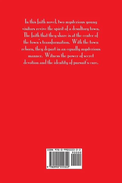In this faith novel, two mysterious young visitors revive the spirit of a desultory town. The faith that they share is at the center of the town's transformation. With the town reborn, they depart in an equally mysterious manner. Witness the power of secret devotion and the identity of pursuit's cure. Patterned after the life and spirit of the West Michigan lakeshore town Grand Haven.