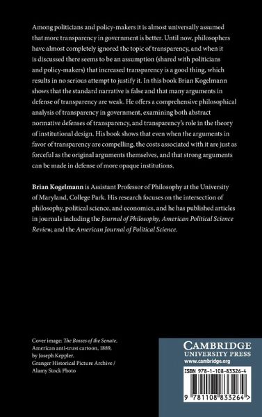 Offers a comprehensive philosophical analysis of transparency in government.