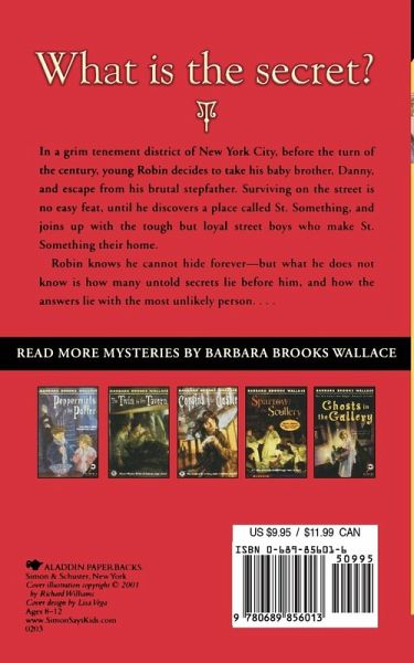 In the late 19th-century New York City, young Robin takes his baby brother and escapes from his brutal stepfather. He discovers a place called St. Something and joins tough but loyal street boys who make it their home. But many untold secrets lie before him--and the answers lie with the most unlikely person. 160 pop.