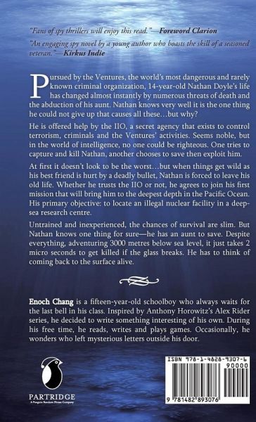 Pursued by the Ventures, the world's most dangerous and rarely known criminal organization, 14-year-old Nathan Doyle's life has changed almost instantly by numerous threats of death and the abduction of his aunt. Nathan knows very well it is the one thing he could not give up that causes all these ... but why? He is offered help by the IIO, a secret agency that exists to control terrorism, criminals and the Ventures' activities. Seems noble, but in the world of intelligence, no one could be righteous. One tries to capture and kill Nathan, another chooses to save then exploit him. At first it doesn't look to be the worst ... but when things get wild as his best friend is hurt by a deadly bullet, Nathan is forced to leave his old life. Whether he trusts the IIO or not, he agrees to join his first mission that will bring him to the deepest depth in the Pacific Ocean. His primary objective: to locate an illegal nuclear facility in a deep-sea research centre. Untrained and inexperienced, the chances of survival are slim. But Nathan knows one thing for sure, he has an aunt to save. Despite everything, adventuring 3000 metres below sea level, it just takes 2 micro seconds to get killed if the glass breaks. He has to think of coming back to the surface alive.