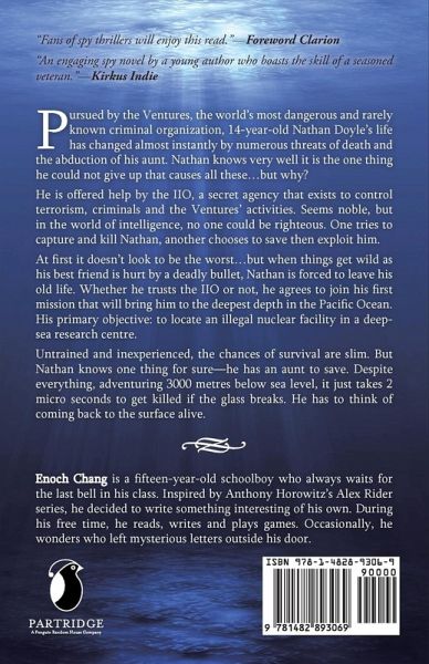 Pursued by the Ventures, the world's most dangerous and rarely known criminal organization, 14-year-old Nathan Doyle's life has changed almost instantly by numerous threats of death and the abduction of his aunt. Nathan knows very well it is the one thing he could not give up that causes all these ... but why? He is offered help by the IIO, a secret agency that exists to control terrorism, criminals and the Ventures' activities. Seems noble, but in the world of intelligence, no one could be righteous. One tries to capture and kill Nathan, another chooses to save then exploit him. At first it doesn't look to be the worst ... but when things get wild as his best friend is hurt by a deadly bullet, Nathan is forced to leave his old life. Whether he trusts the IIO or not, he agrees to join his first mission that will bring him to the deepest depth in the Pacific Ocean. His primary objective: to locate an illegal nuclear facility in a deep-sea research centre. Untrained and inexperienced, the chances of survival are slim. But Nathan knows one thing for sure, he has an aunt to save. Despite everything, adventuring 3000 metres below sea level, it just takes 2 micro seconds to get killed if the glass breaks. He has to think of coming back to the surface alive.