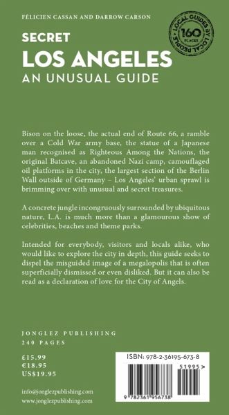A concrete jungle surrounded by abundant nature, Los Angeles is surprisingly more than just celebrities, beaches, and theme parks. From bison in the wild, to the actual end of Route 66, an old Cold War army base, a monument to a Japanese man recognized as Righteous Among the Nations, the original Batcave, a unique statue of a shirtless Abraham Lincoln, and an abandoned Nazi camp, the L.A. urban sprawl is packed with unusual and secret treasures. Intended for everybody, visitors and locals alike, who would like to explore the city in depth, this guide seeks to dispel the misguided image of a megalopolis that is often superficially dismissed or even disliked.a declaration of love for the City of Angels.