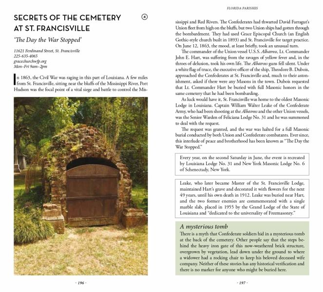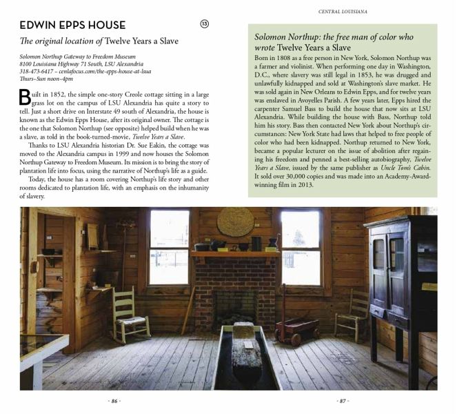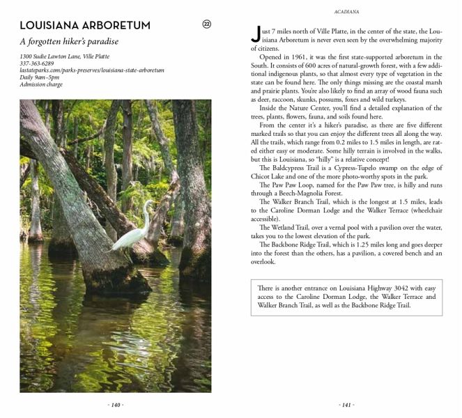 The smallest church in the world, the grave of two dogs who got married, a tree where old shoes promise to unburden your soul, the only example of Congo-style architecture built by African Americans, the one-time capital of Texas, one of the most humorous "battles" of World War II, millions of years-old fossils on the side of a highway, the site of the finest wedding ever to take place in the South, the world's largest bald cypress tree, the flag of the Republic of West Florida (an independent country for two months in 1810), the world's largest chimpanzee sanctuary, the highest natural summit in Louisiana, the oldest human-fabricated structures in the Americas, one of the most mysterious headstone carvings you're likely to see anywhere, the only international boundary marker in the contiguous United States, the smallest plane ever used as Air Force One, a full dinosaur hidden in the heart of Baton Rouge ...An indispensable guide for those who thought they knew Louisiana well or would like to discover another side of the state.