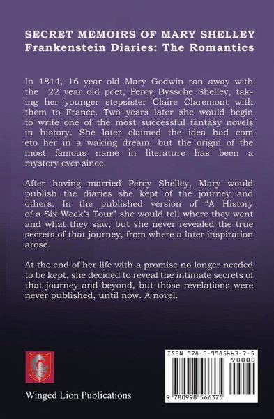 The real love story of Frankenstein! In 1814, 16-year-old Mary Godwin fell in love with the 22-year-old married poet, Percy Bysshe Shelley, and in spite of the condemnation of their families and society, ran away to Paris, taking Mary's 15-year-old step-sister Claire with them, chased by the law and Mary's hated stepmother. Two teenage girls and the romantic poet of "free love" would walk across France, ravaged by war in the defeat of Napoleon, to Switzerland and up the Rhine River to a castle called Frankenstein, on an intimate journey of love, sexual awakening, and self-discovery, and find the real inspiration for the most famous name in literature. In this recently discovered secret autobiography, Mary Shelley reveals the intimate truth of that trip, the story of a rivalry between two sisters and the origins of her famous book. In her published diary, Mary Wollstonecraft Shelley wrote of where they went and what they saw, but never until now has been revealed the intimate secrets of where inspiration arose. Released from a promise to keep portions of the journey secret, Mary Shelley lays her soul bare in the intimacy of love, loss, and betrayal, the search for a mother's validation, and inspiration as a woman artist discovering her voice.